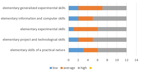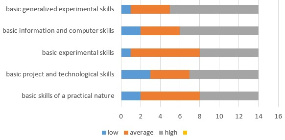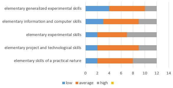 justification of one's position, risk assessment, independent decision-making, problem solving), the levels of formation of students of basic generalized experimental skills.