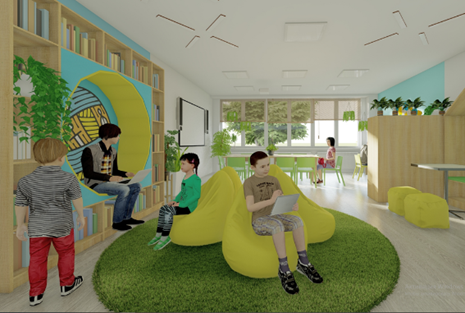 Let's consider in more detail the stages of professional online interaction of elementary and basic school teachers based on the analysis of the stages of implementation of a short-term school-wide project as an extracurricular partnership activity of students in inclusive education and teachers. The first educational module of the short-term general school project consists in choosing the topic of the project and its type. According to the classification of types of projects proposed in the research of M. Romanovska[1], a general school project can be an entrepreneurial, design, social, international Internet project, etc. In our opinion, for the formation of research competences of teachers and students, in inclusive education, it is advisable to choose such a topic of the school-wide project, which will ensure the integration of the above types of projects to achieve a single goal - to modernize the educational environment based on the practical implementation of the project.  The main goal of the members of the creative group of teachers at this stage is to maximize students' interest in project activities and generate ideas for all participants in the educational process. Accordingly, in the students' Google Classrooms, teachers who are part of the creative group place the first task: to propose a topic for the school-wide project. Pedagogical workers summarize the suggestions of students in inclusive education that they have posted on their electronic pages. In order to choose a common research topic, students' and teachers' ideas are discussed during a meeting in Google meet. The second educational module of the short-term school-wide project consists in the development of the project in accordance with the chosen topic, for example, "School library" which can be find in Fig. 1.