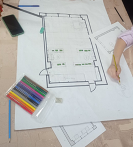 Fig. 5 Making a plan of the "School Library" by a group of students in inclusive education of basic school